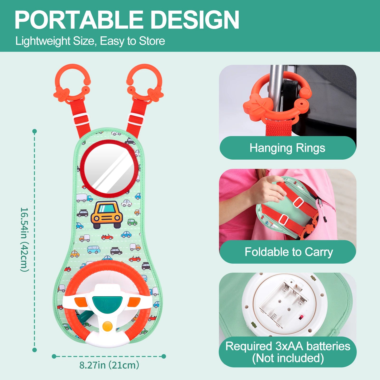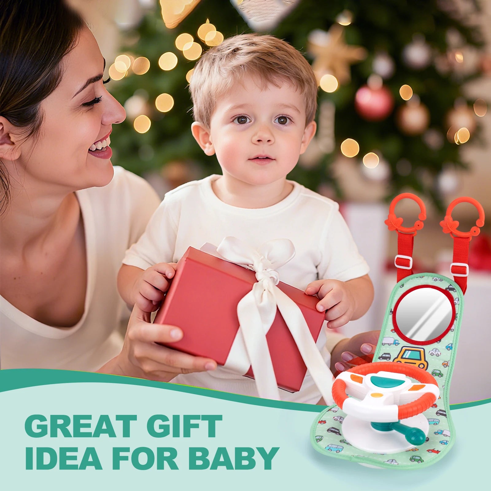 Baby Car Eletric Steering Wheel Toy with Music Simulate Driving Car Baby Seat Copilot Toys Hanging Toys for Todder 0-12M Gifts