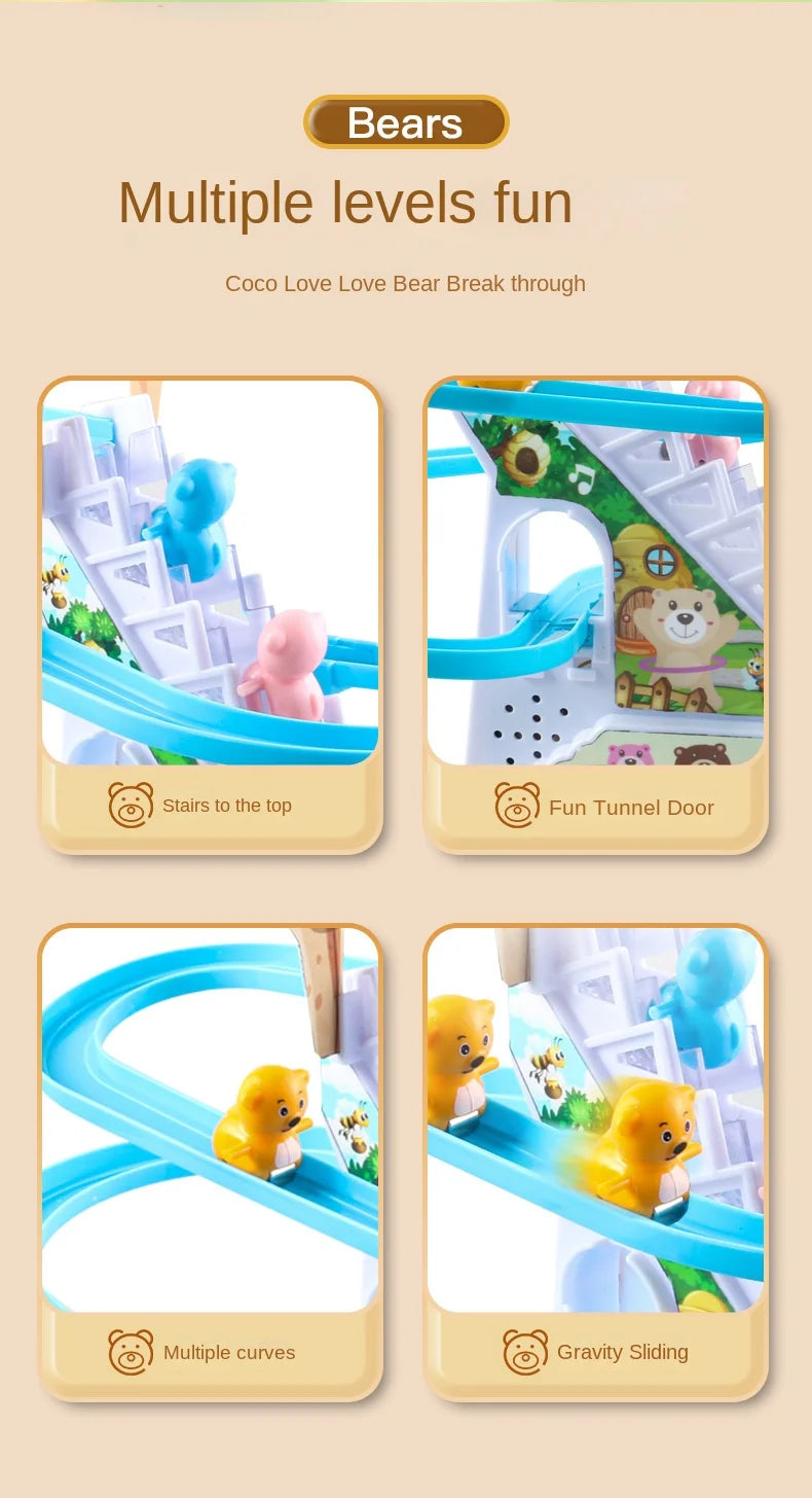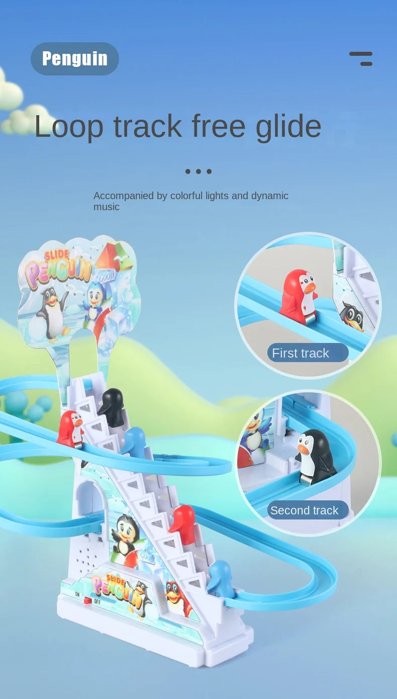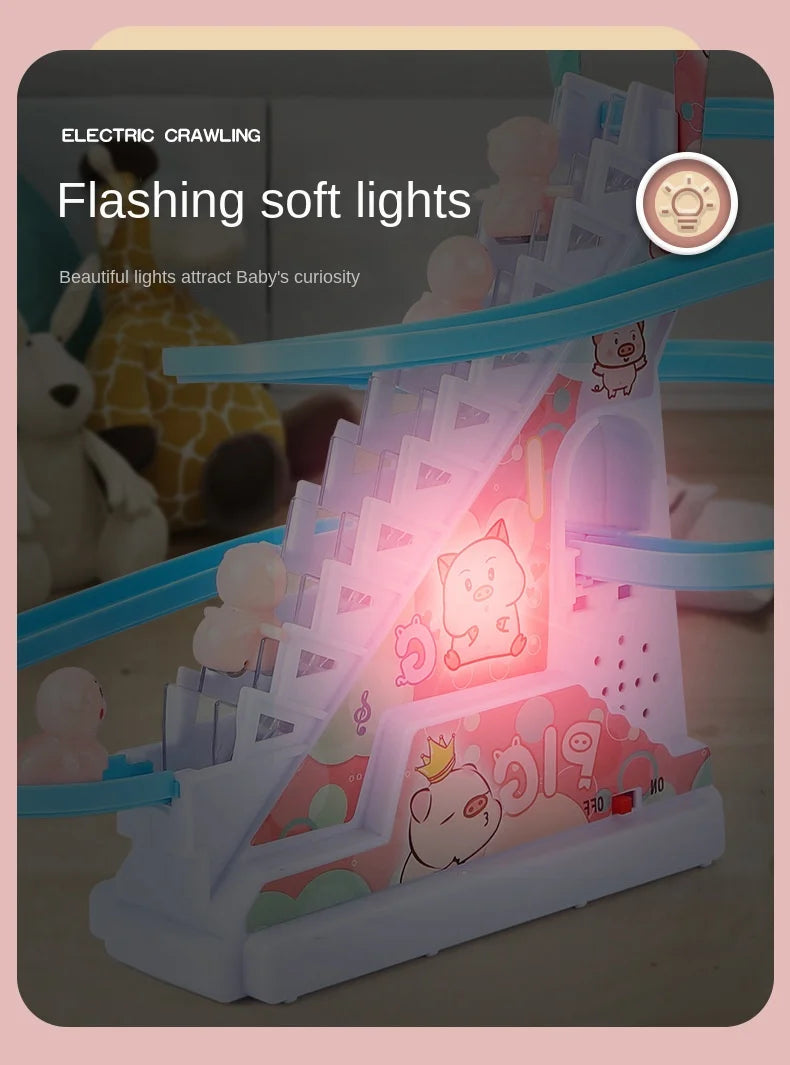 Electric Duck Track Rail Racing Slide Duckling Climbing Stairs Baby Toy LED Lights Musical Slide Roller Coaster Toys for Gift