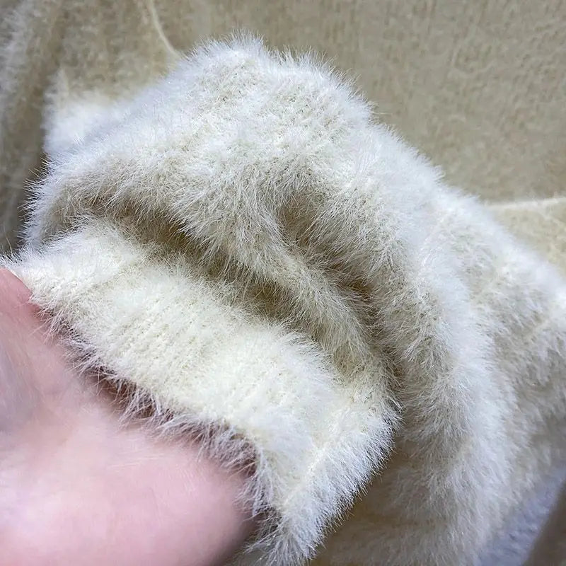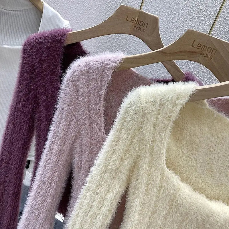 Mink Sweater Women's Autumn and Winter Inner Top French Niche Square Neck Short Soft Sticky Long Sleeves Top Bottom Knit Sweater
