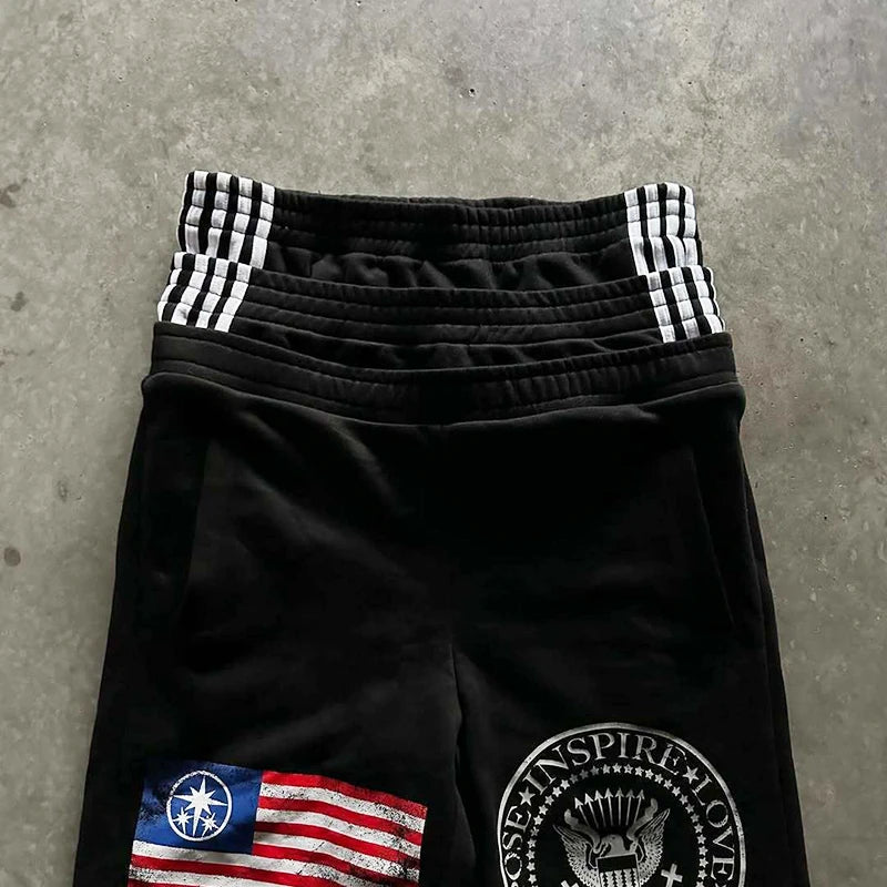 Trendy Wide Leg Pants Three Waist Letter Print Street Style Fashionable Sweatpants