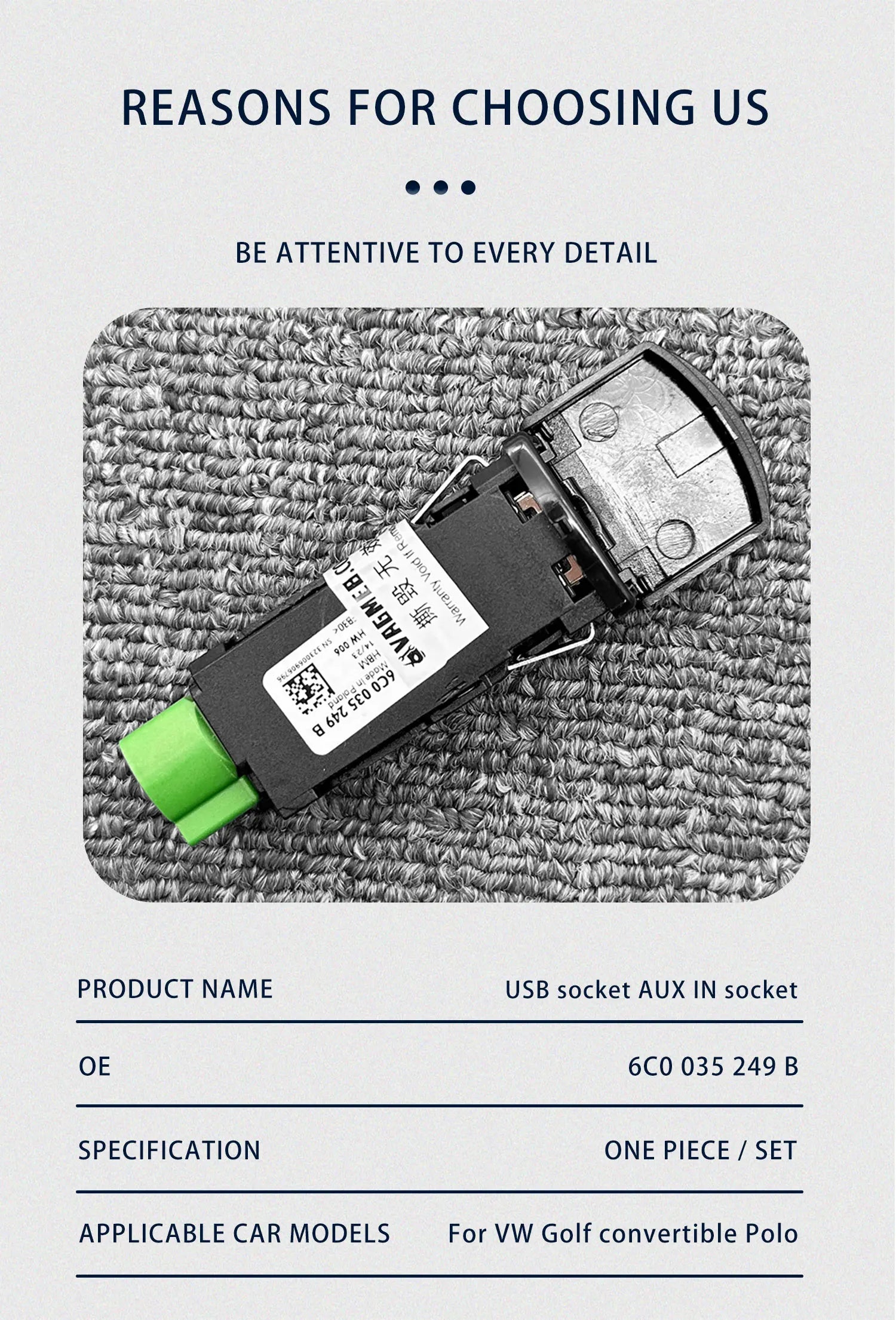 USB socket AUX IN socket for VW Golf convertible Polo/Derby/Vento IND Sharan Multivan Scirocco Alhambra 6C0 035 249 B 6C0035249B